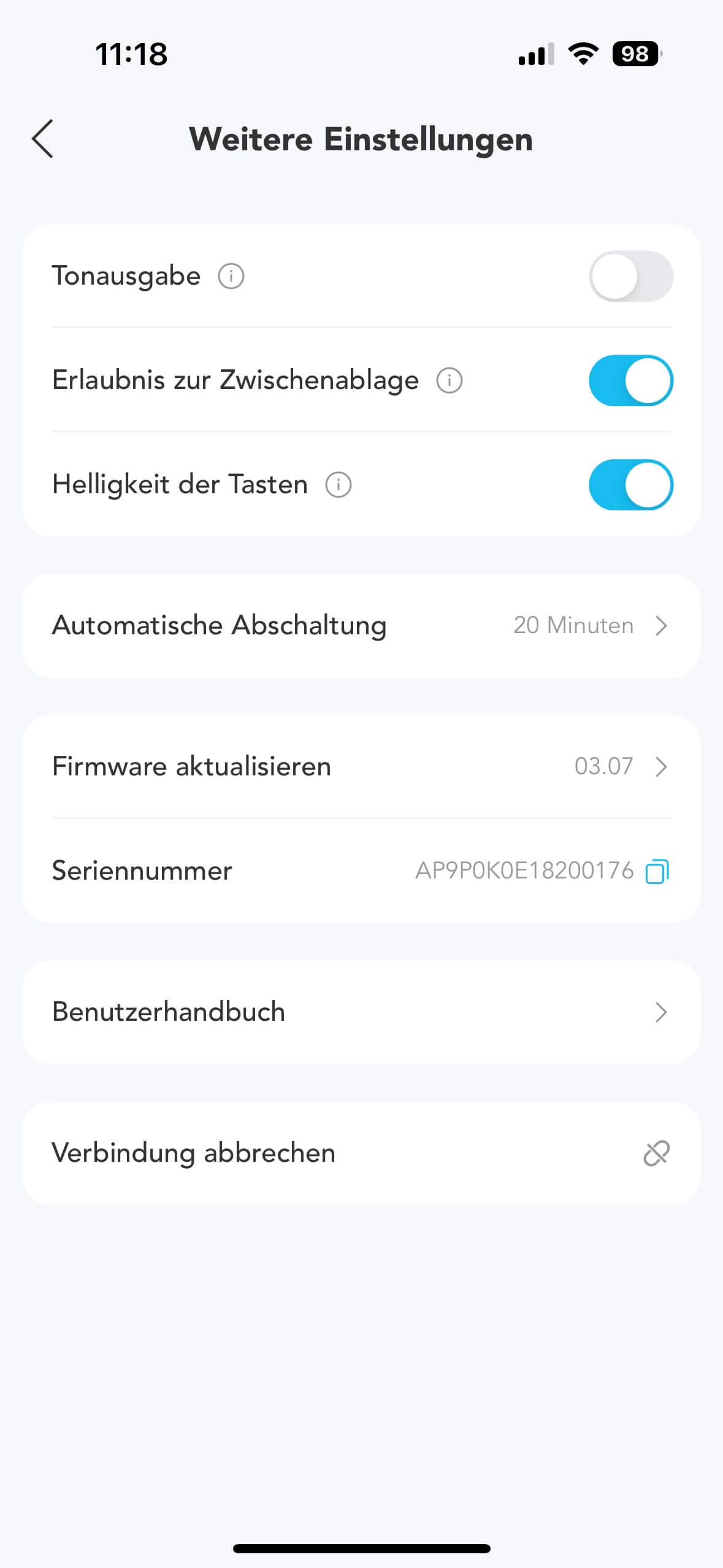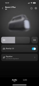 Die Installation der Soundcore App für Android oder iOS sei empfohlen. In der App kommen dann der Equalizer mit zahlreichen Presets, die Lightshow-Funktionen und einige andere Personalisierungsmöglichkeiten dazu. Es kann der Startsound und die Beleuchtung des Tastenfelds deaktiviert, Updates eingespielt und Abschaltzeiten gewählt werden.