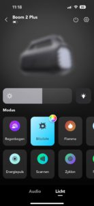 Wer‘s noch lauter haben möchte, sollte zu einer PA greifen und sowieso die Nachbarn fragen, ob sie mitfeiern möchten. Die können sich dann auch an der Lightshow der Boom 2 Plus erfreuen, die synchron zum Beat wabert, pulsiert oder flackert.