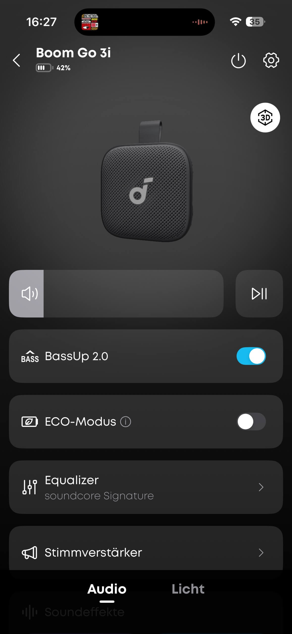 Im Zusammenspiel mit der Soundcore-App bekommt man dann noch einen Voice-Verstärker, der die Stimme entweder wie ein Megafon verstärkt oder eine Aufzeichnung im Loop wiedergeben kann.