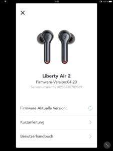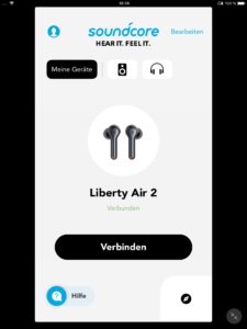 Über die kostenlose Soundcore App für iOS- und Android-Systeme kann der Klang einerseits per Equalizer angepasst werden. Hierfür steht eine Auswahl an über 20 Presets zur Verfügung, die eine große stilistische Bandbreite abdecken. Darüber hinaus sind auch eigene Einstellungen speicherbar. Alternativ kann zudem ein Hörtest absolviert werden, der eine sogenannte HearID generiert und automatisch individuelle Anpassungen vornimmt, die insbesondere der Balance zwischen linkem und rechten Ohr dienen. Von Vorteil ist darüber hinaus, dass über die App Firmware-Updates vorgenommen werden können.