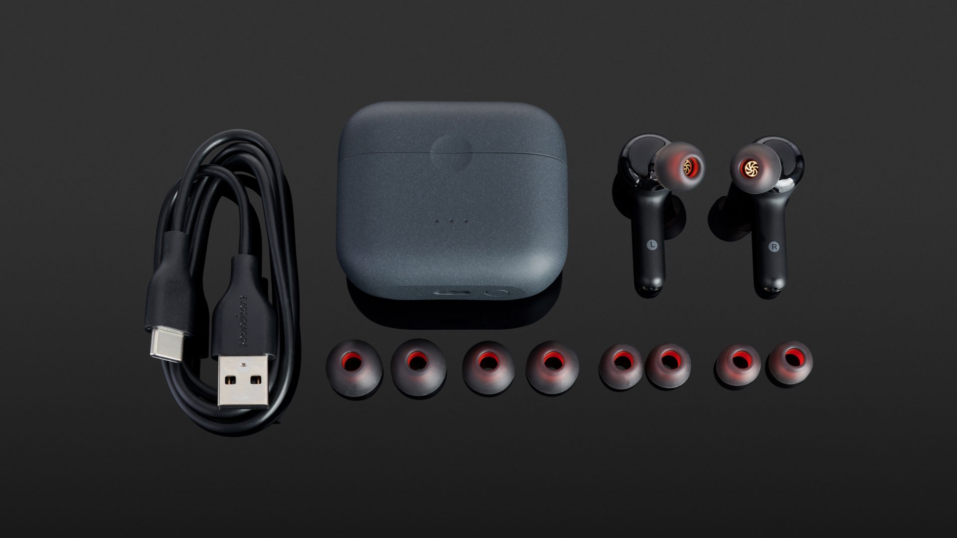 Bei gehobenerem Pegel liegt die Laufzeit der Hörer bei sechseinhalb Stunden, wobei die In-Ears im Lade-Case insgesamt drei Mal vollständig wieder aufgeladen werden können, was einer Gesamtzeit von ungefähr 26 Stunden entspricht. Auf langen Reisen sollte allerdings eingeplant werden, dass ein Ladezyklus der Hörer fast zwei Stunden beansprucht. Das Case kann hingegen sowohl über den vorhandenen USB-C-Anschluss als auch kabellos mit Strom versorgt werden, wobei die Ladezeit per Qi dem Hersteller zufolge bei dreieinhalb Stunden liegt, während das Etui über das mitgelieferte USB-C zu USB-A-Ladekabel in 90 Minuten wieder aufgeladen ist.