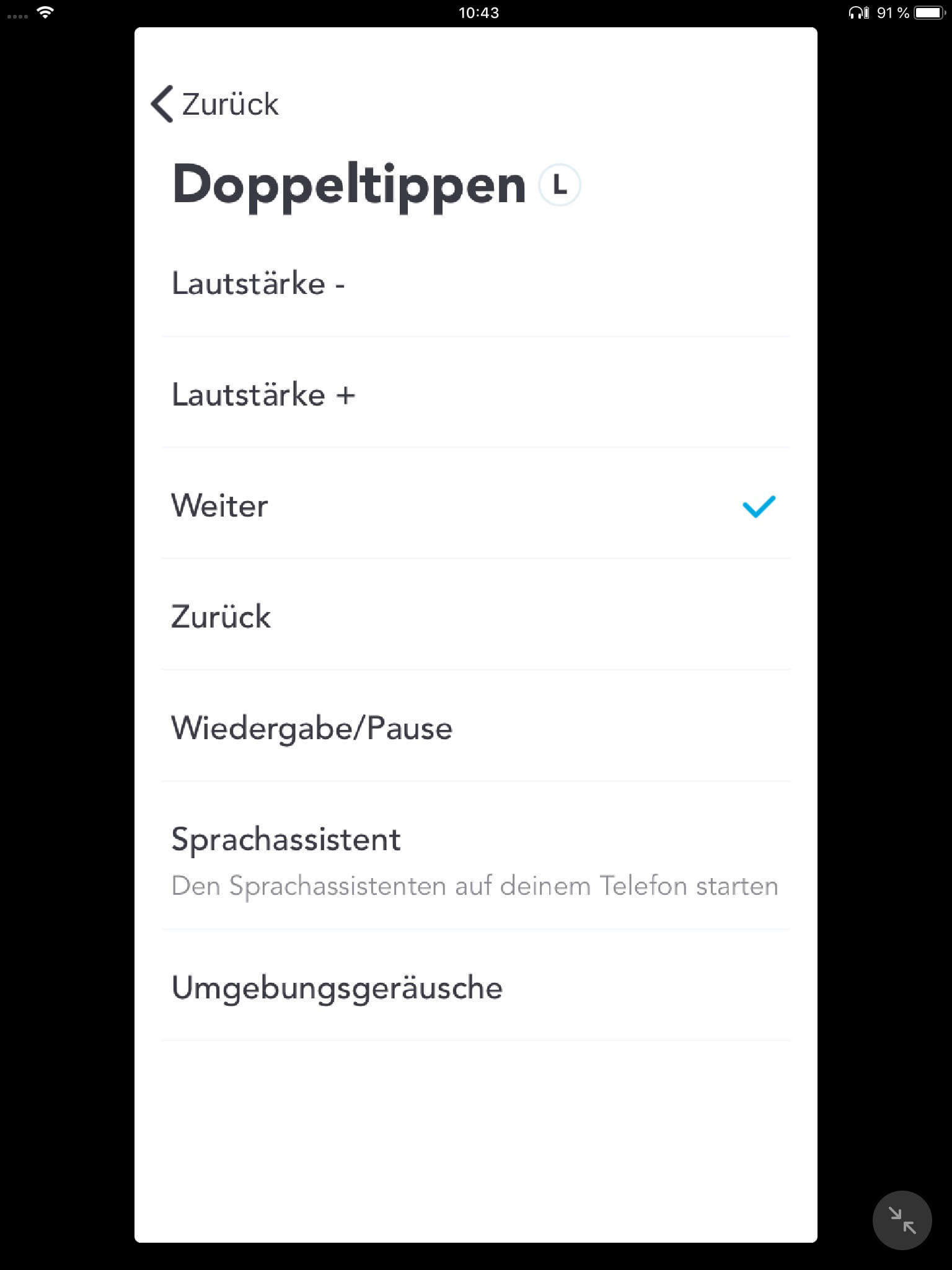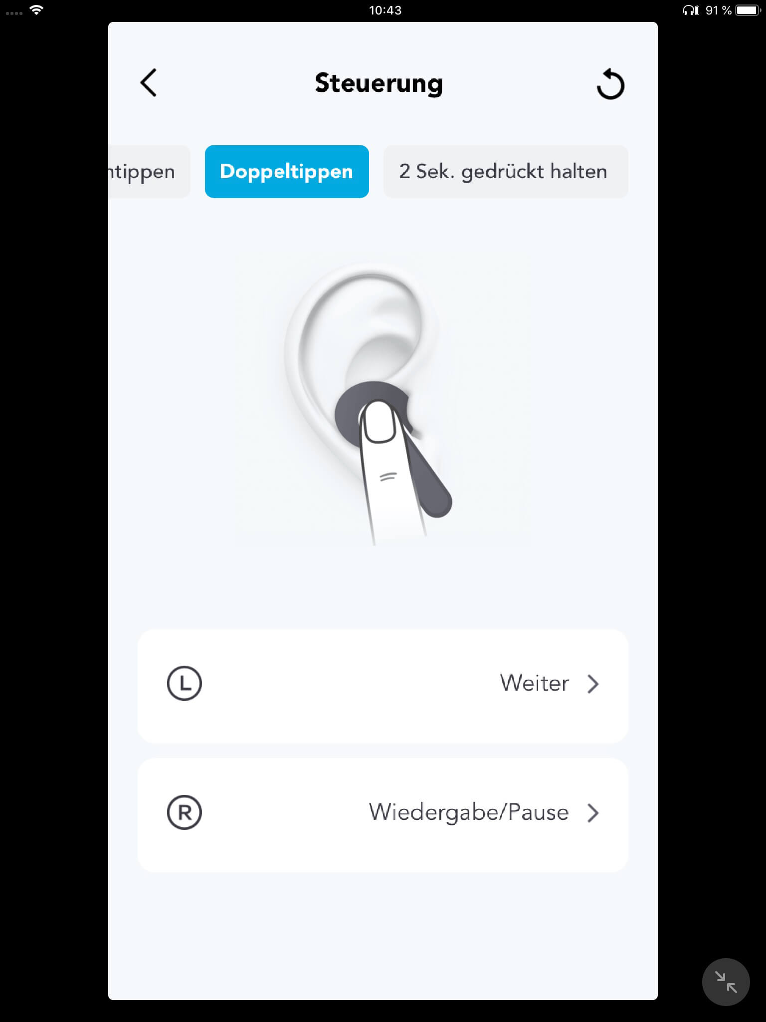 Besteht eine Funkverbindung, steuert in der Werkseinstellung ein zweifaches Antippen der rechten Seite die Wiedergabe, während linksseitig zum nächsten Titel vorgesprungen werden kann. Das Annehmen von Telefonaten ist zudem beidseitig durch zweimaliges Tippen möglich. Ein Halten dient hingegen dem Beenden oder Ablehnen von Gesprächen und schaltet ansonsten zwischen Grundklang und Geräuschunterdrückung um.