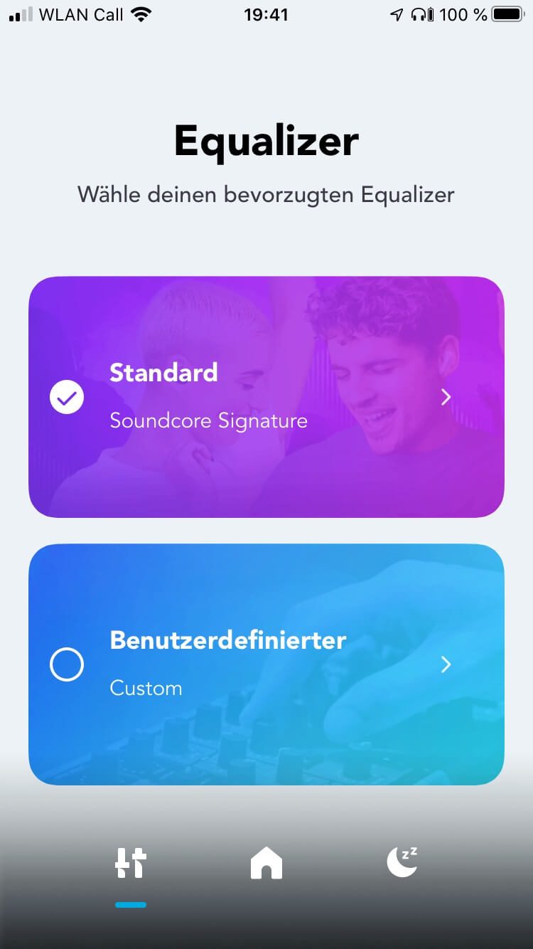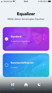 Die übersichtlich strukturierte Soundcore App bietet zusätzlich zur Umgebungsgeräuschkontrolle und Klanganpassung noch einen Schlafmodus mit verschiedenen Ambient-Sounds. Per Firmware-Updates ist darüber hinaus eine Aktualisierung der Hörer möglich. Ergänzend zur App kann zudem ein Widget eingerichtet werden, über das ebenfalls eine Auswahl des ANC-Profils sowie ein Umschalten zwischen Grundklang, Transparenzmodus und Noise Cancelling erfolgen kann.