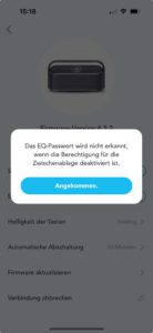 Über der Aux-In lassen sich auch analoge Signale zuspielen. Sobald eine Miniklinke in der Buchse steckt, wird der Bluetooth-Eingang unterbrochen und das am Kabel anliegende Signal wird abgespielt. In der App lassen sich aber weiterhin Lautstärke und EQ-Einstellungen verändern.