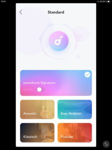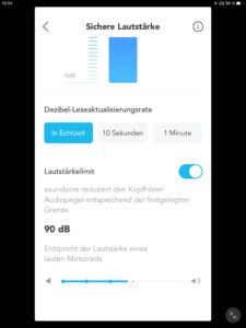 Ein zentrales Element der Soundcore App (Android und iOS) stellt die Umgebungsgeräuschkontrolle dar. Hierbei stehen eine adaptive Geräuschunterdrückung, die sich automatisch an die Umgebung anpasst, und ein manueller Modus mit fünf Intensitätsstufen zur Auswahl. Ebenso unterteilt sich die Verstärkung an Außengeräuschen in einen sogenannten Sprechmodus, der die Wiedergabelautstärke absenkt, und einen fünfstufigen Transparenzmodus. Optional lässt sich zudem ein Widget einrichten, über das ein Umschalten zwischen den Betriebsarten und ihren Modi erfolgen kann, was gut gemacht ist. Auch die Klangregelung bietet mit der BassUp-Funktion, 20 vorkonfigurierten Presets und einem EQ, der acht Bänder für eigene Einstellungen zur Verfügung stellt, eine Vielzahl an Optionen. Über eine Gehörschutz-Sektion der App wird zudem der aktuelle Wiedergabepegel auf einer Skala angezeigt und es kann eine Lautstärkebegrenzung zwischen 75 und 100 Dezibel vorgenommen werden. Eine äußerst begrüßenswerte Möglichkeit, um das Gehör von Heranwachsenden, aber auch das eigene Hörvermögen zu schützen. Zumal hilfreiche Informationen zu den Richtwerten geboten werden. Darüber hinaus lassen sich per App noch Firmware-Aktualisierungen und Hörereinstellungen vornehmen, indem sich Sprachansagen, Multipoint-Verbindungen oder eine Windgeräuschreduzierung (de-)aktivieren lassen.