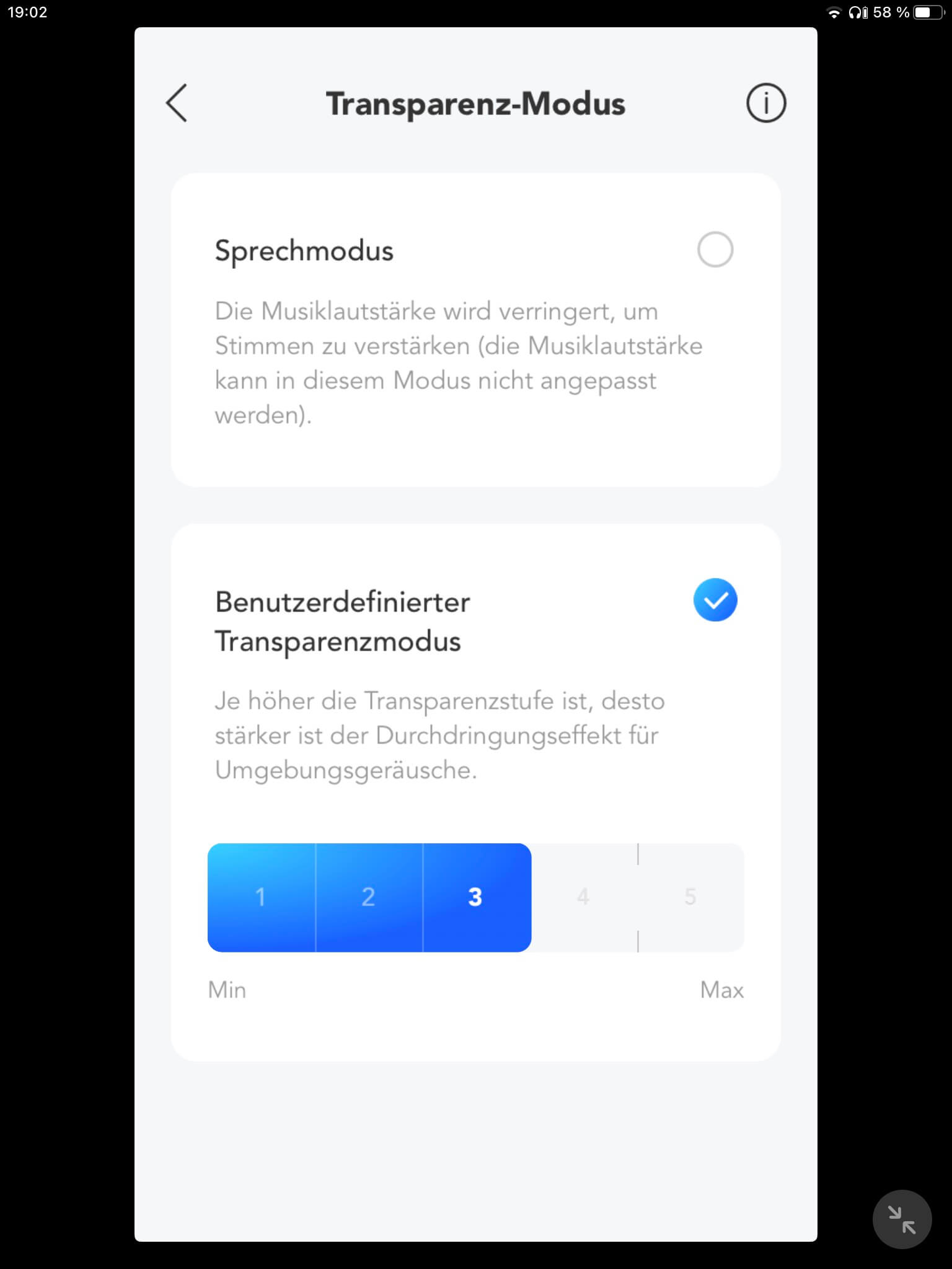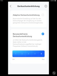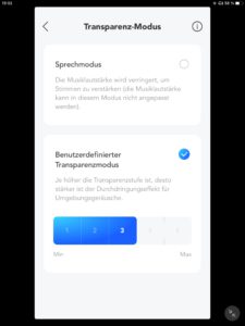 - adaptive Geräuschunterdrückung und regelbarer Transparenzmodus