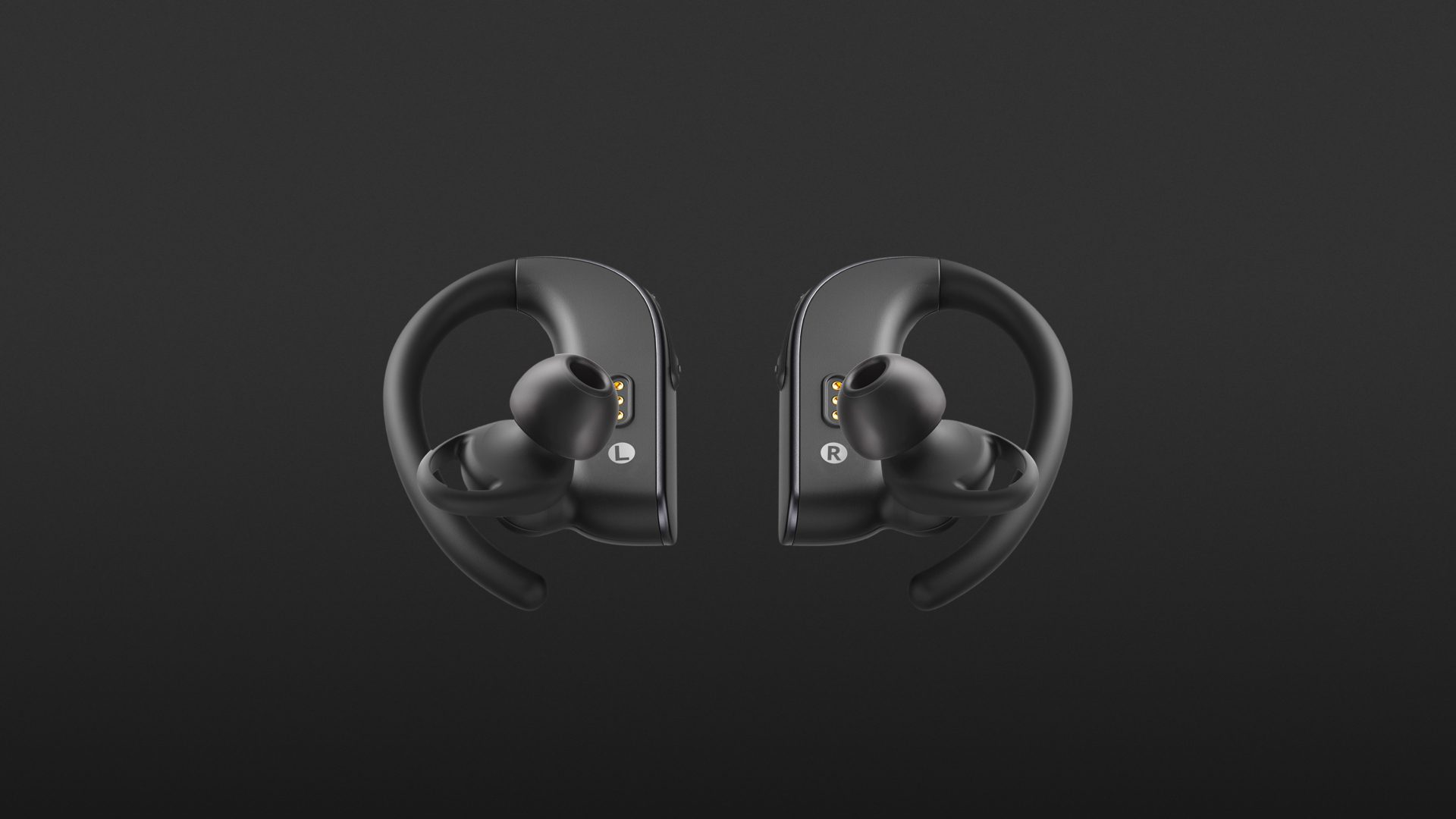 Um einen stabilen Sitz zu gewährleisten, verfügen die Sporthörer über eine Kombination aus Ohrbügel und Flügel. Während die kurzen EarWings Halt gebend in der Ohrmuschel sitzen, liegt der Bügel hinter dem Ohr, was druckentlastend und zusätzlich stabilisierend wirkt. Konstruktionsbedingt kann das Anlegen der In-Ears zwar eine gewisse Aufmerksamkeit erfordern, dafür sitzen die Hörer jedoch bequem und erzeugen keine Druckbeschwerden. Positiv bemerkbar macht sich hierbei auch, dass eine individuelle Anpassung erfolgen kann, da fünf verschiedene Größen an Eartips und drei Varianten an Flügeln mitgeliefert werden, die frei kombinierbar sind.