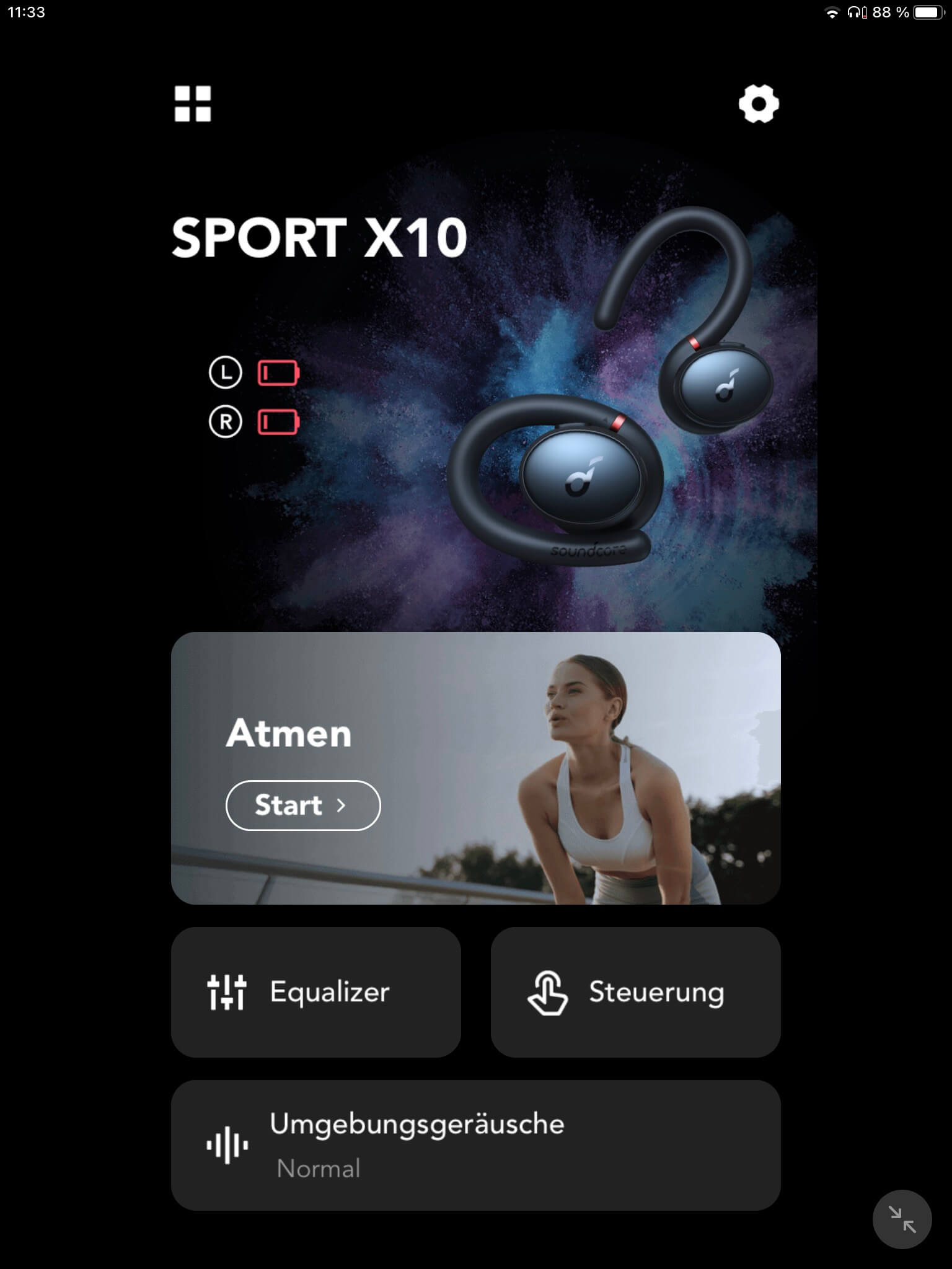 Eine Sektion mit Atemübungen kann zudem beim Aufwärmen vor und Entspannen nach dem Sport unterstützen. Ergänzt wird das Angebot durch Modi zum Einschlafen und Stressabbau im Alltag, die durch einen Timer zeitlich begrenzt und von relaxten Hintergrundklängen begleitet werden können. Neben der Tasterbelegung sind über die App noch Firmware-Aktualisierungen möglich. Zumal sich in den Einstellungen eine Windgeräuschreduzierung einschalten lässt. Auch das Umschalten zwischen Standard-Betrieb, ANC- und Umgebungsmodus kann per App erfolgen. Wahlweise bietet zudem ein Widget, das sich einrichten lässt, einen direkten Zugriff auf die Umgebungsgeräuschkontrolle.
