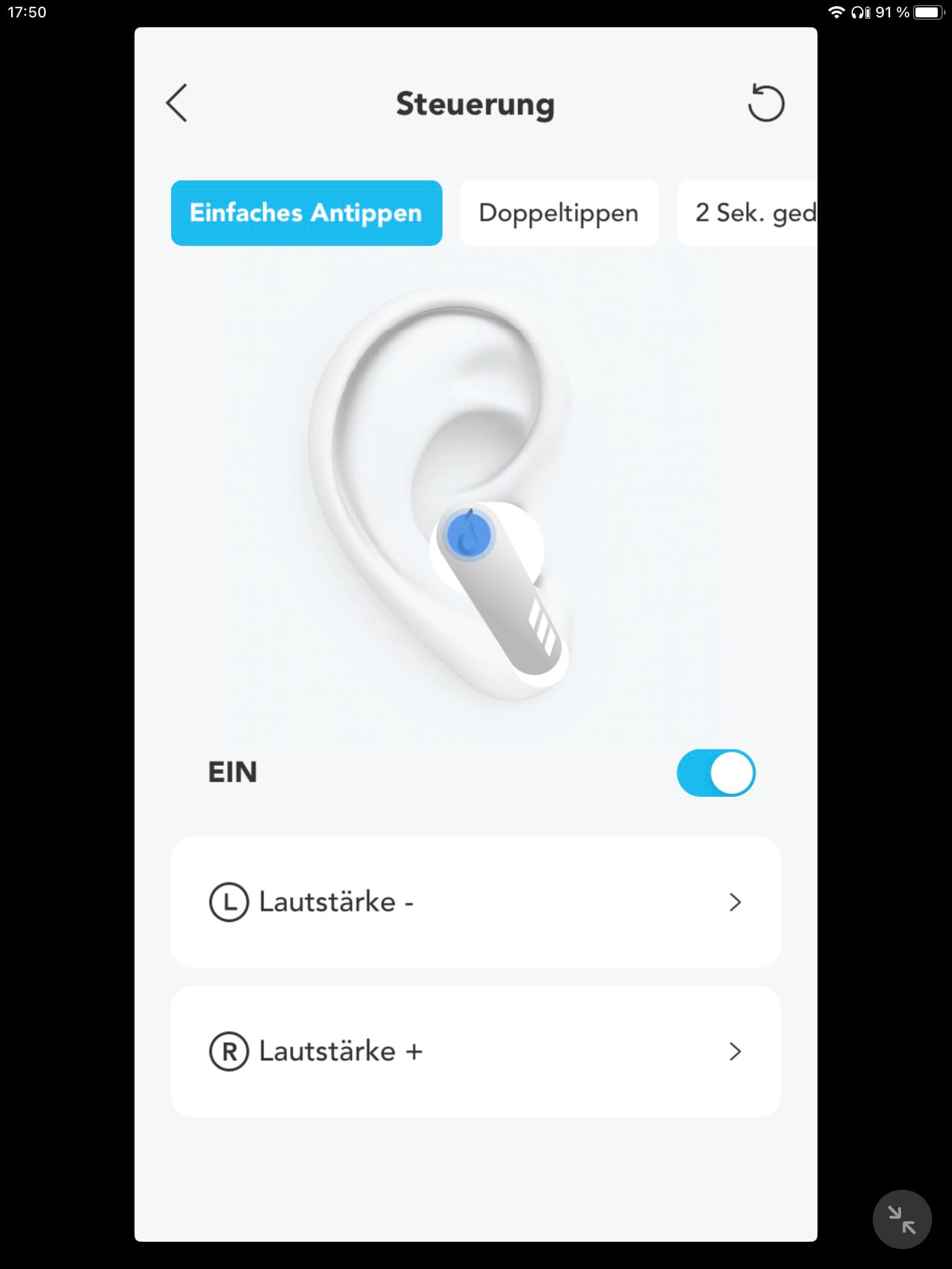 Im Alltag lassen sich die Soundcore VR P10 obendrein als Bluetooth-Hörer nutzen, die mit AAC einen hochwertigen Audiocodec unterstützen. Dabei kann das Koppeln mit dem Smartphone oder Tablet bereits nach dem Öffnen des Cases erfolgen, wodurch die Hörer eingeschaltet und automatisch in den Pairing-Modus versetzt werden. Ein manuelles Ein- oder Ausschalten über die berührungsempfindlichen Höreroberflächen ist hingegen nicht vorgesehen. Ab Werk ist jedoch ein Steuern der Wiedergabe, das Abwickeln von Telefonaten, ein Vorspringen zum nächsten Titel und das Aufrufen von Sprachassistenten möglich. Per App besteht zudem die Option, eine Lautstärkeregelung nachzurüsten und die Belegung an die eigenen Vorlieben anzupassen. Hierbei stehen weitere Funktionen wie das Stummschalten der Mikrofone, ein Zurückspringen bei der Titelwahl oder das (De-)Aktivieren des „Super Gehör“-Modus für FPS-Spiele zur Auswahl. Auch per Bluetooth ist die Verbindung stabil, sodass sich innerhalb von Gebäuden mehrere Räume überbrücken lassen, während im Freien eine Reichweite von bis zu 18 Metern besteht.
