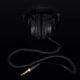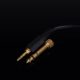 Das einseitig geführte Kabel ist als Spiralkabel ausgeführt. Dieses ist allerdings sehr starr und unflexibel, so dass es mir in dieser Ausführung eindeutig zu kurz geraten ist. Spannt man das Kabel, lässt es sich auf ingesamt ca. 3 Meter verlängern. Jedoch schon bei einem Abstand von einem halben Meter spannt das Kabel merklich und stört damit das entspannte Musikhören. Ohne Verlängerungskabel würde ich mit dem Kopfhörer in meiner Abhörumgebung nicht arbeiten wollen.