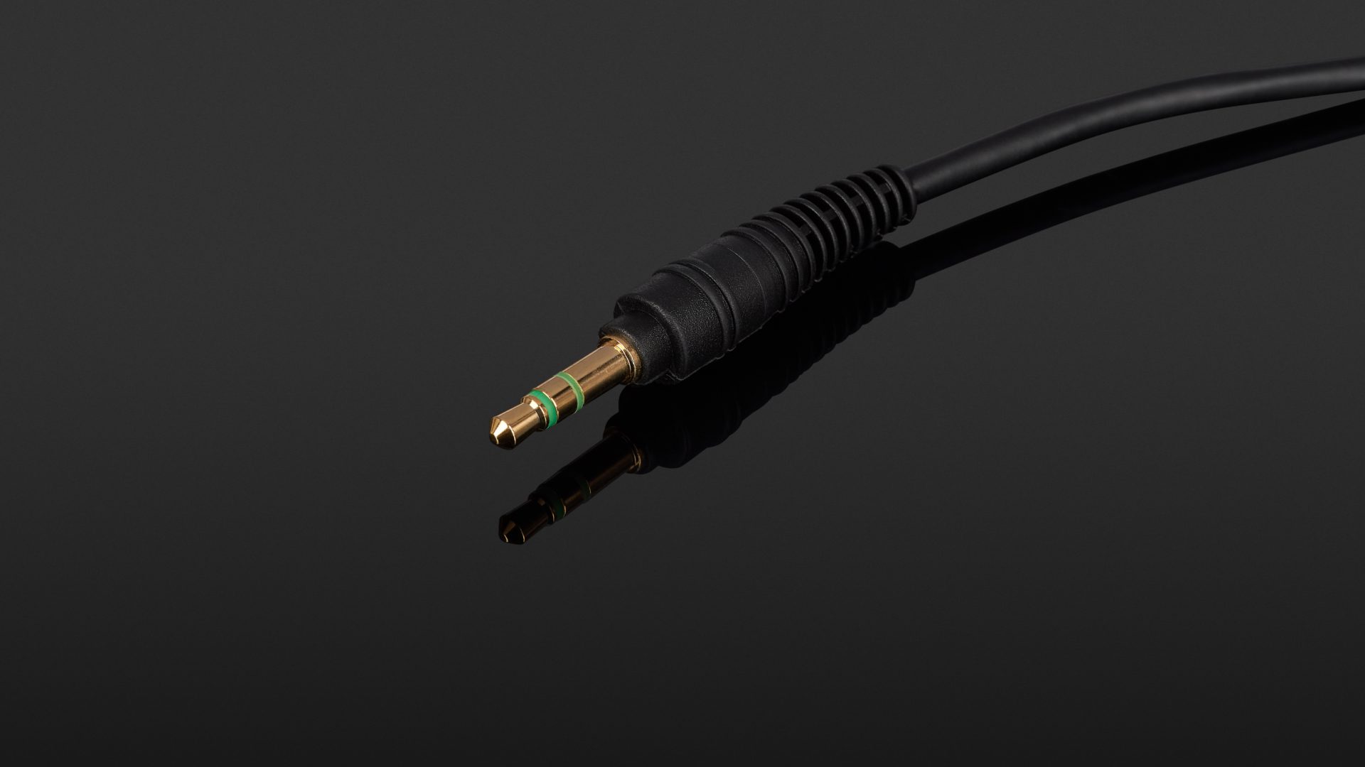 Auch der HD688 verfügt über eine einseitige, austauschbare Kabelführung. Diese ist in Form eines kurzen Miniklinkensteckers (statt der üblichen Buchse) an der linken Ohrmuschel realisiert. Hier schließt man eines der zwei mitgelieferten Anschlusskabel mit einem oder drei Metern Länge mit vergoldeten Miniklinkensteckern an und verriegelt diese bei Bedarf mit einem Plastikstück gegen versehentliches Herausziehen. Ebenfalls zum Lieferumfang gehört ein Adapter auf das 6,3-mm-Klinkenformat sowie ein simpler Tragebeutel.