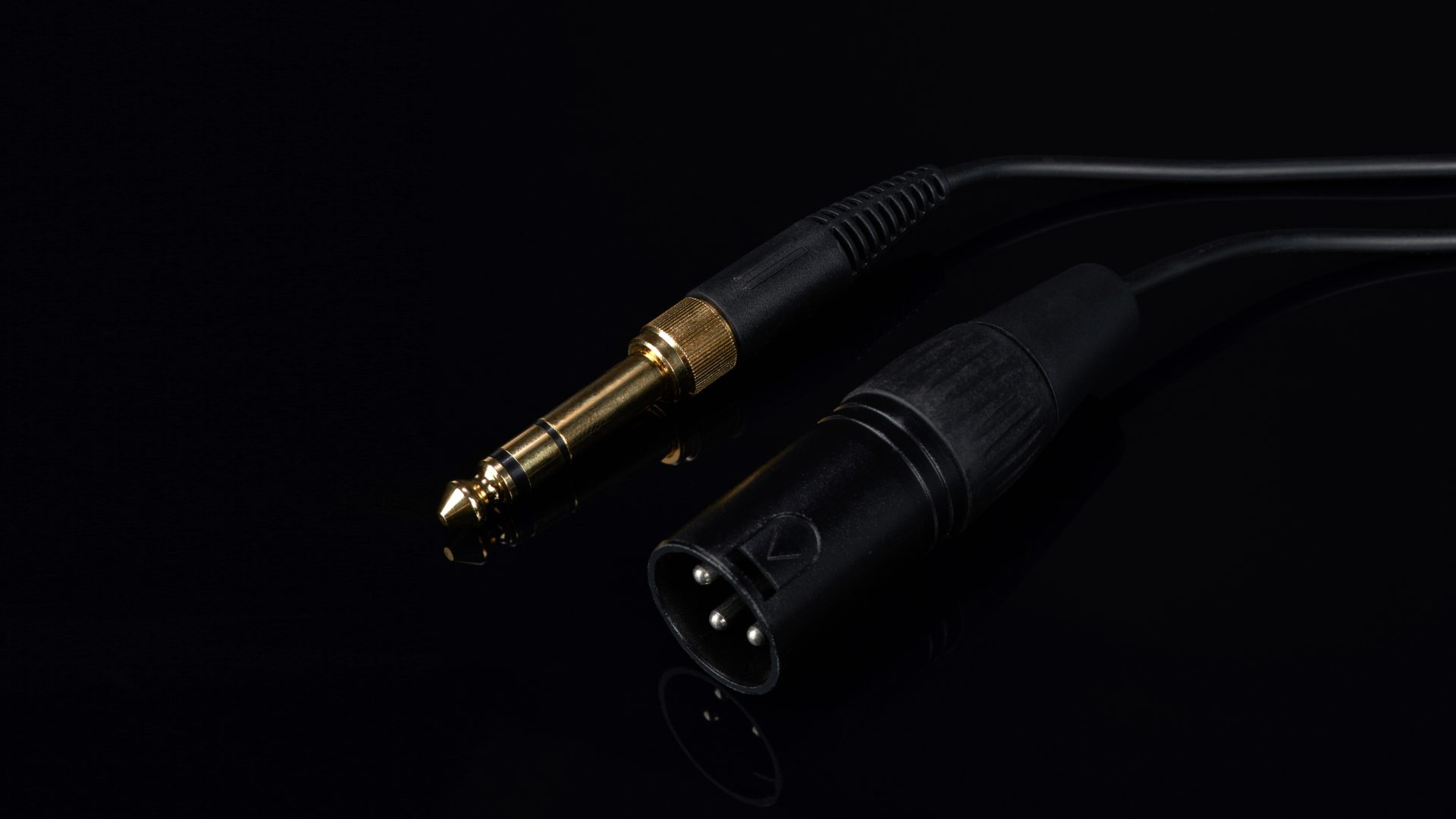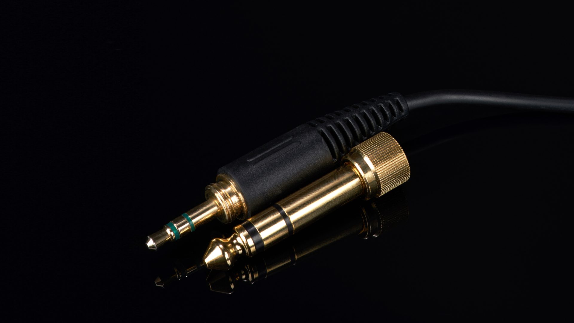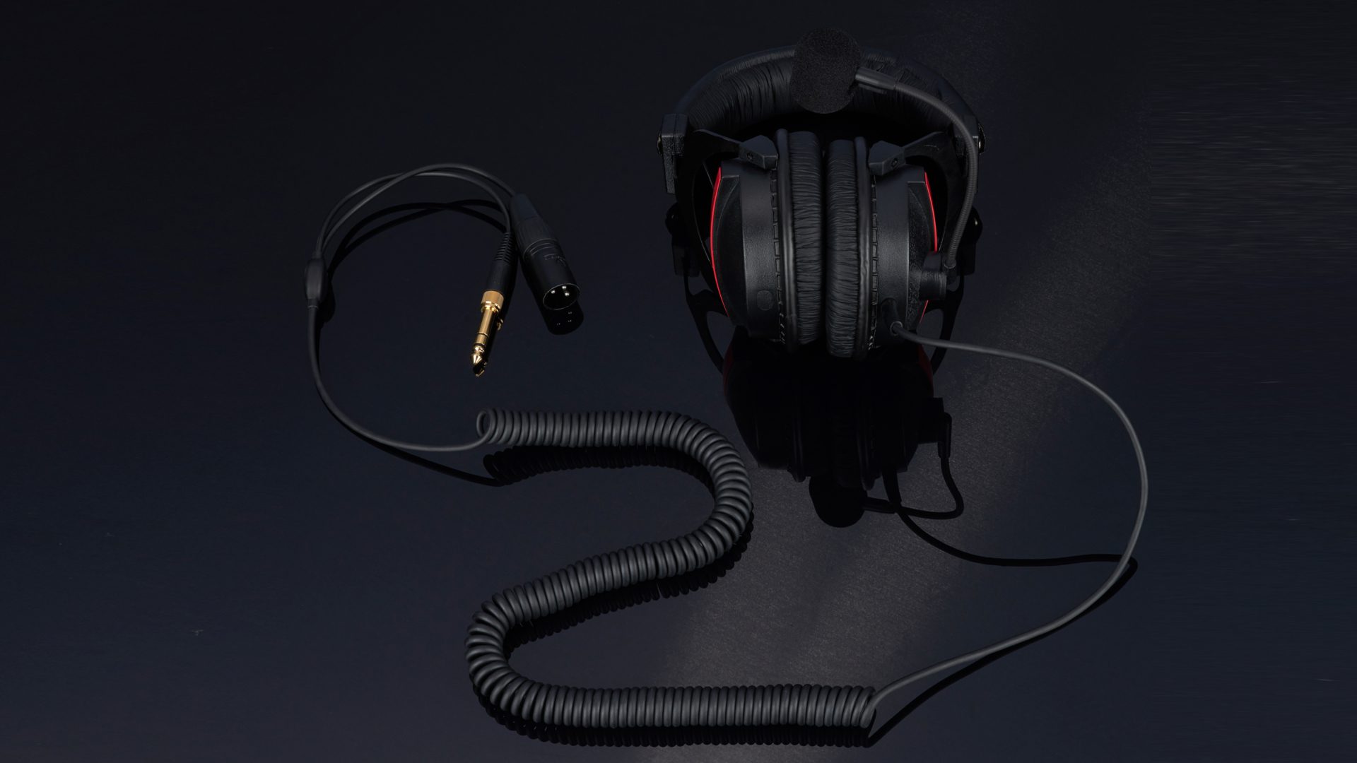 Das Kopfhörerspiralkabel ist fest mit der linken Ohrmuschel verbunden und ist ungefähr 1,15 Meter lang. Das Spiralkabel in der Aufteilung zum Mikrofon via XLR und Miniklinke, bzw. mittels mitgeliefertem Adapter auch grosse Klinke, zur Musikquelle an.