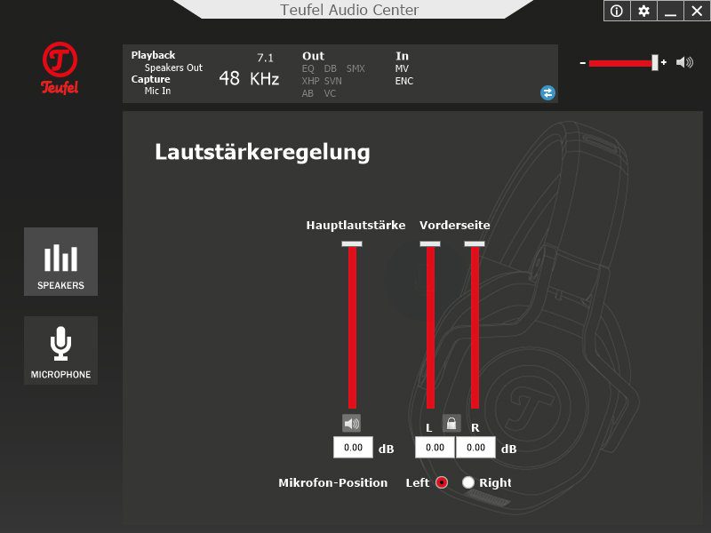 Leider ließ sich das Teufel Audio Center an meinem Testrechner mit Windows 8.1 Pro trotz mehrerer Versuche nicht installieren. Dennoch wurde der Kopfhörer von Windows erkannt und konnte, dank dem im USB-Kabel eingebauten Soundchip, als Wiedergabe- und Aufnahmegerät ausgewählt werden. Auf einem Windows 10 Tablet lief die Software hingegen problemlos.