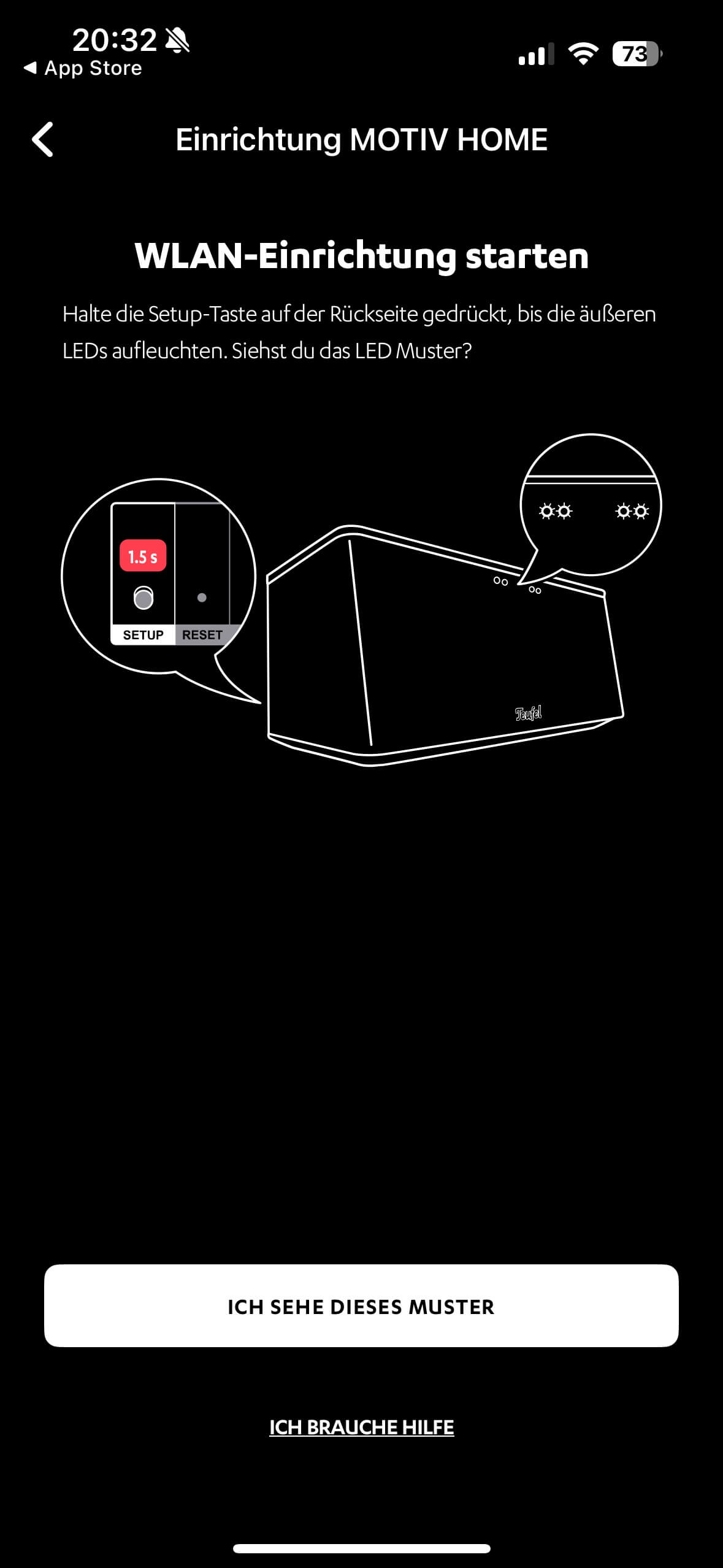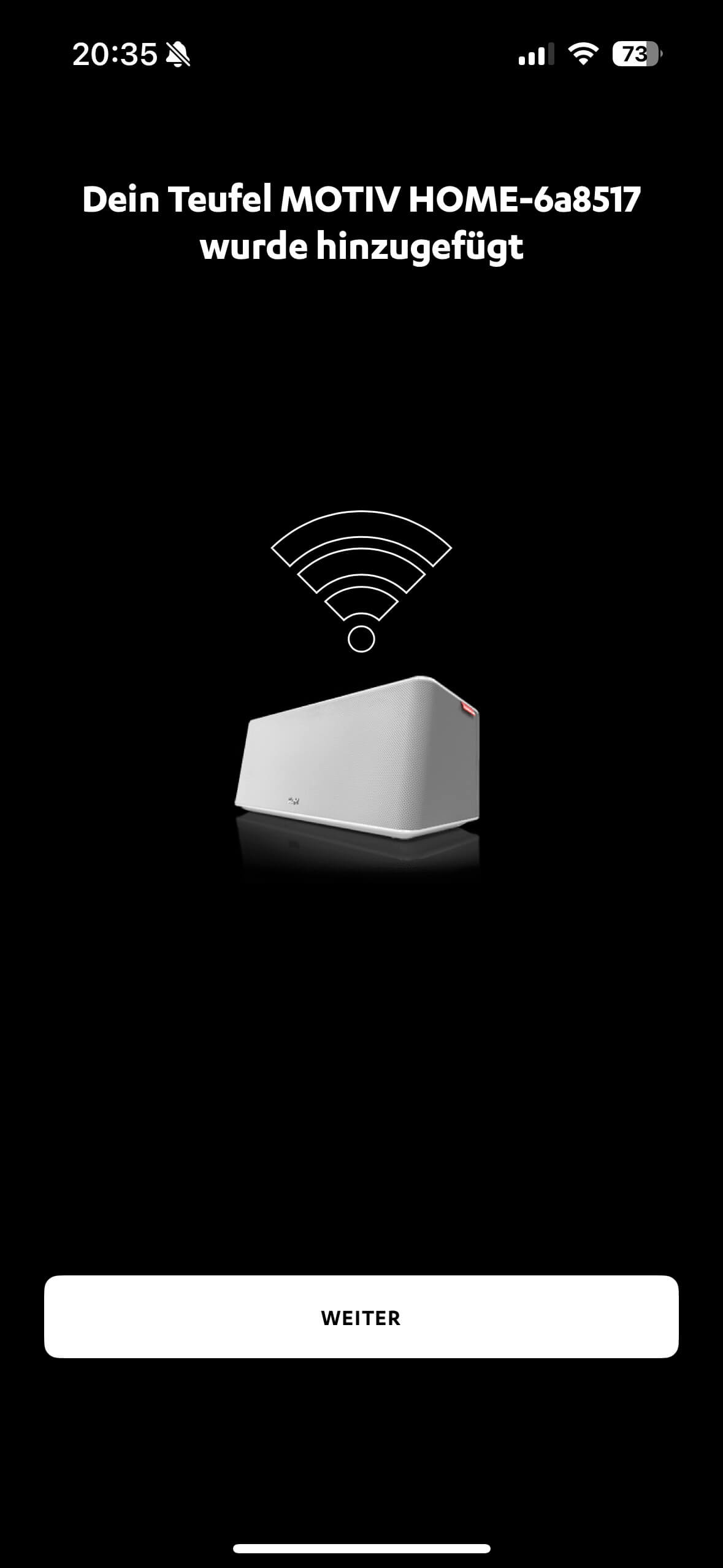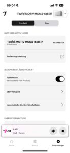 Die Königsdisziplin stellt beim Teufel Motiv Home natürlich die Integration ins heimische WLAN-Netzwerk dar. Dazu sollte zunächst einmal die App „Teufel Home“ auf dem Android oder iOS Device installiert werden. Nach deren Start und dem Drücken der Setup-Taste auf der Rückseite vom Motiv Home wird der Anschluss-Prozess visuell freundlich begleitet, bis sich die Box im WLAN eingerichtet hat und über – in meinem Falle – alle angemeldeten iOS-Devices via Airplay 2 ansprechbar ist. Über Apple Home kann die Box dann im Multiroom-Verbund zusammen mit einem iPod-Mini und einer Tivoli Model Two Digital (zum Test) betrieben und gesteuert werden.