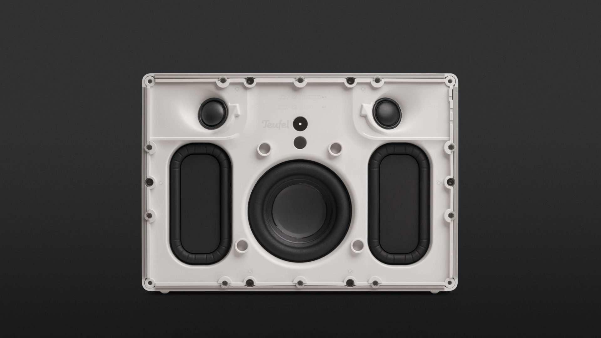 Das große Versprechen des rund 2,5 Kilogramm schweren Lautsprechers ist jedoch seine Reparierbarkeit. Der 26 Zentimeter breite, 18 Zentimeter hohe und nur 10 Zentimeter tiefe Kasten lässt sich im Handumdrehen aufschrauben und auseinanderbauen. Im Inneren setzt Teufel auf Modularität, sodass auch der Akku einfach durch Abziehen austauschbar ist. Insgesamt setzt man fast ausschließlich auf klickbare und verschraubte Komponenten. Geklebt wurde nur, wo es zwingend erforderlich ist. Wir waren beim Aufschrauben erstaunt, dass man den Lautsprecher nahezu komplett mit einem Schraubenzieher sowie einem Sechskant-Schlüssel zerlegen kann und beim Zusammenbau alles wieder nahtlos ineinander passt – ohne große Mühe.
