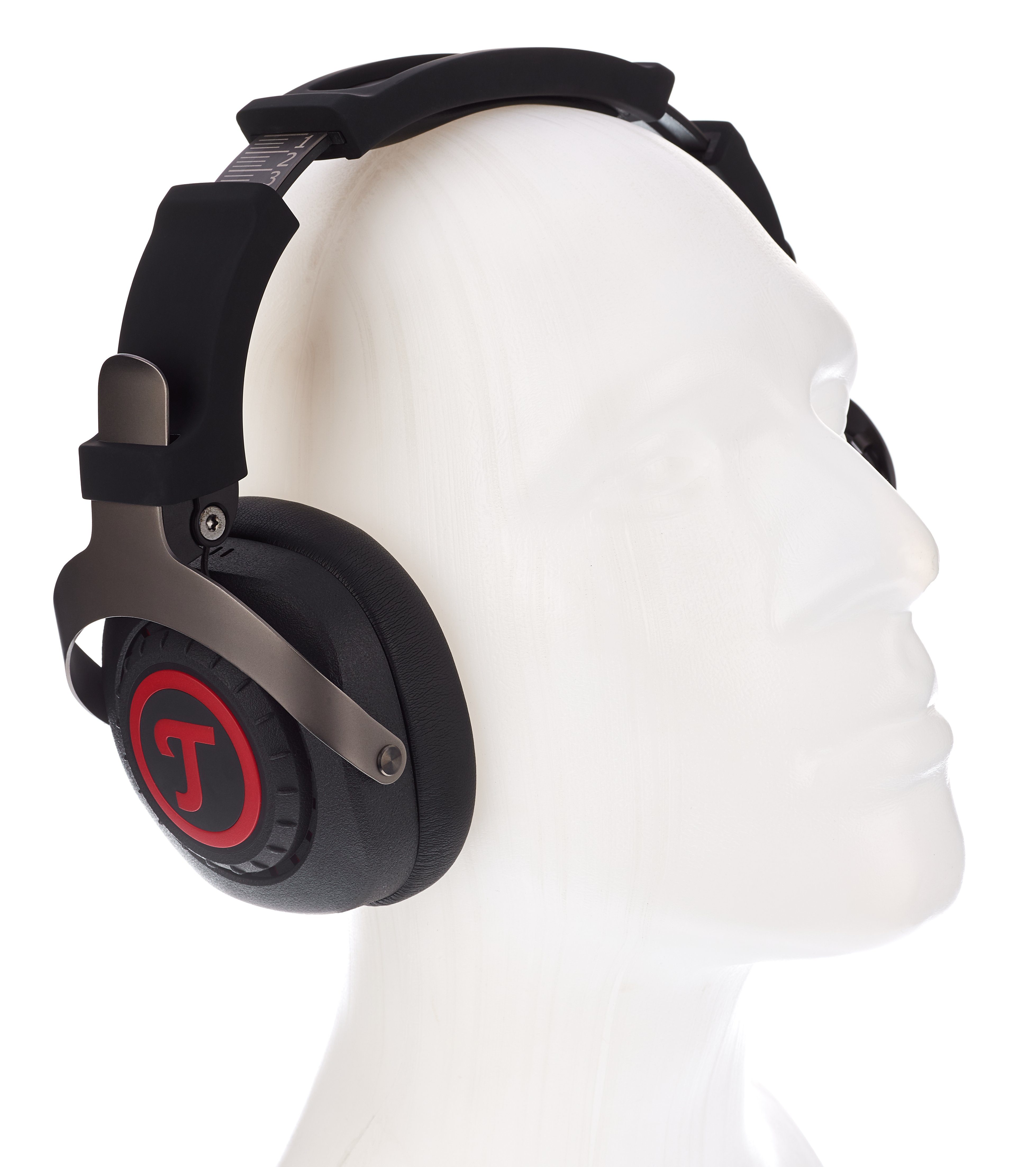 Beim Turn handelt es sich um einen geschlossenen, dynamischen Kopfhörer mit einklappbaren Hörmuscheln, 40-Millimeter Neodymium-Treibern und einer integrierten Bassanhebung. Diese verstärkt auf Wunsch die Frequenzen unterhalb von 100Hz um drei Dezibel. Aktiviert wird sie durch Drehen eines wuchtigen Kunststoffrings an der Außenseite der linken Hörmuschel. Und genau hier liegt entsprechend auch die Namensgebung begründet: Turn eben. Das Scharfschalten des Bass-Boost wird dabei durch einen roten Ring im Gehäuse-Chassis signalisiert.
