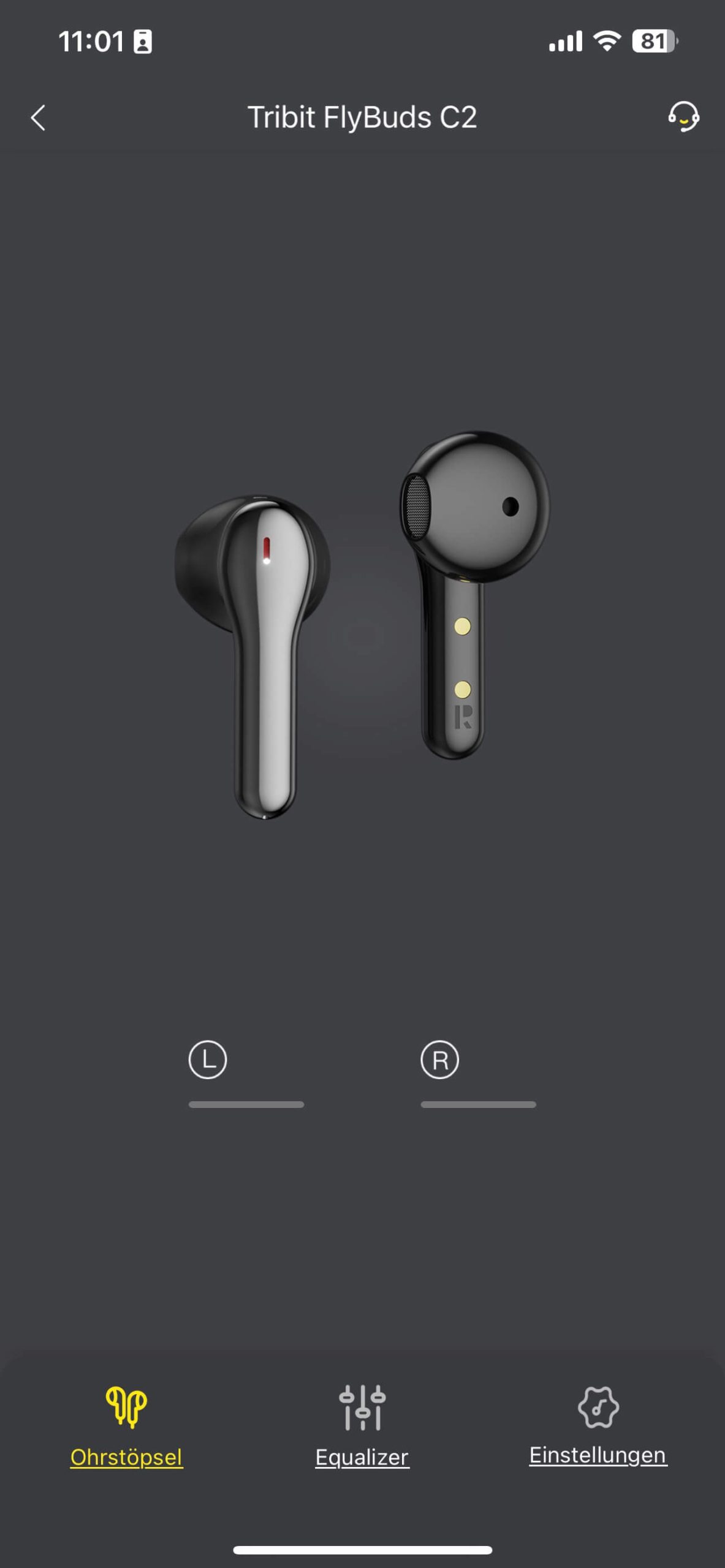 Obwohl Tribit weder in dem Manual, noch auf ihrer Seite darauf hinweist, können die FlyBuds C2 per Tribit App (iOS, Android) individualisiert werden. Die Hörer zunächst in der App ausgewählt und mit ihr verbunden, wird anschließend der momentane Ladestatus des Akkus angezeigt und auf Wunsch die Firmware aktualisiert.