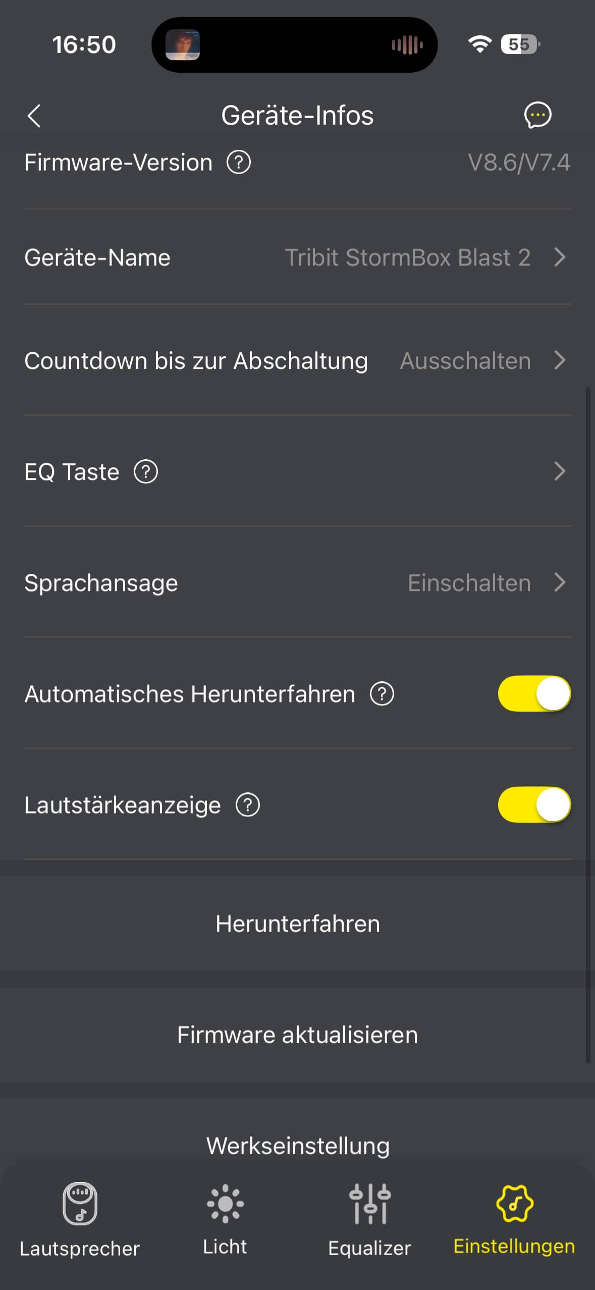 Mit der Tribit-App lassen sich dann noch ein Equalizer mit sieben Presets oder ein 10-Band-EQ zur genaueren Bearbeitung des Sounds aufrufen.
