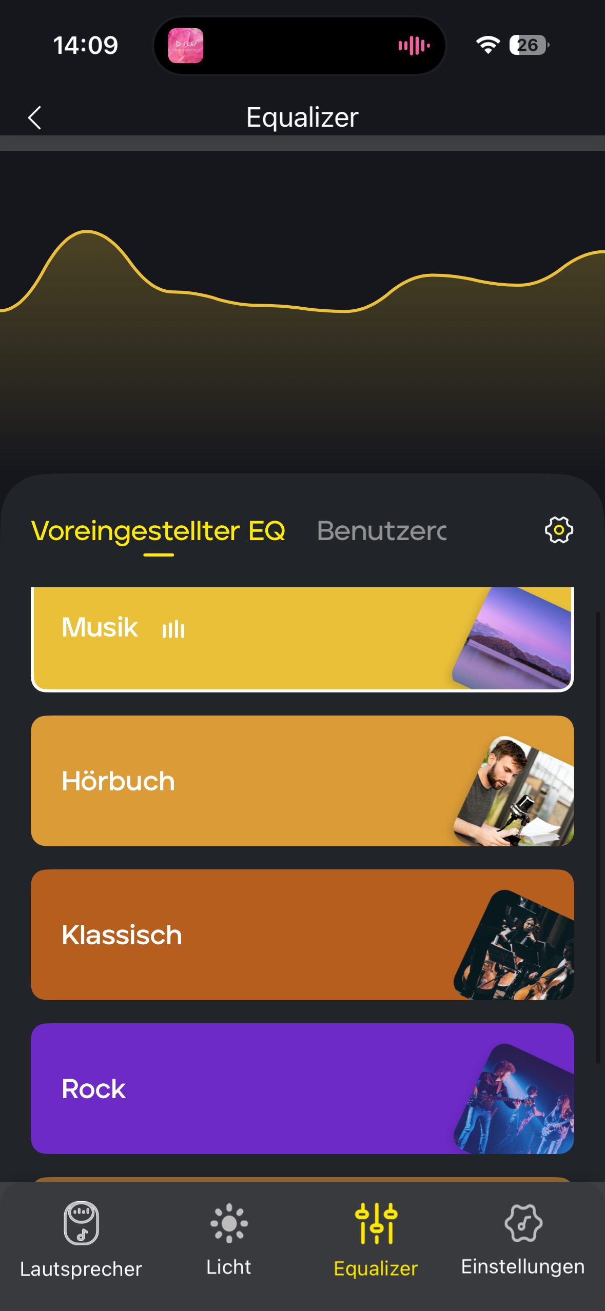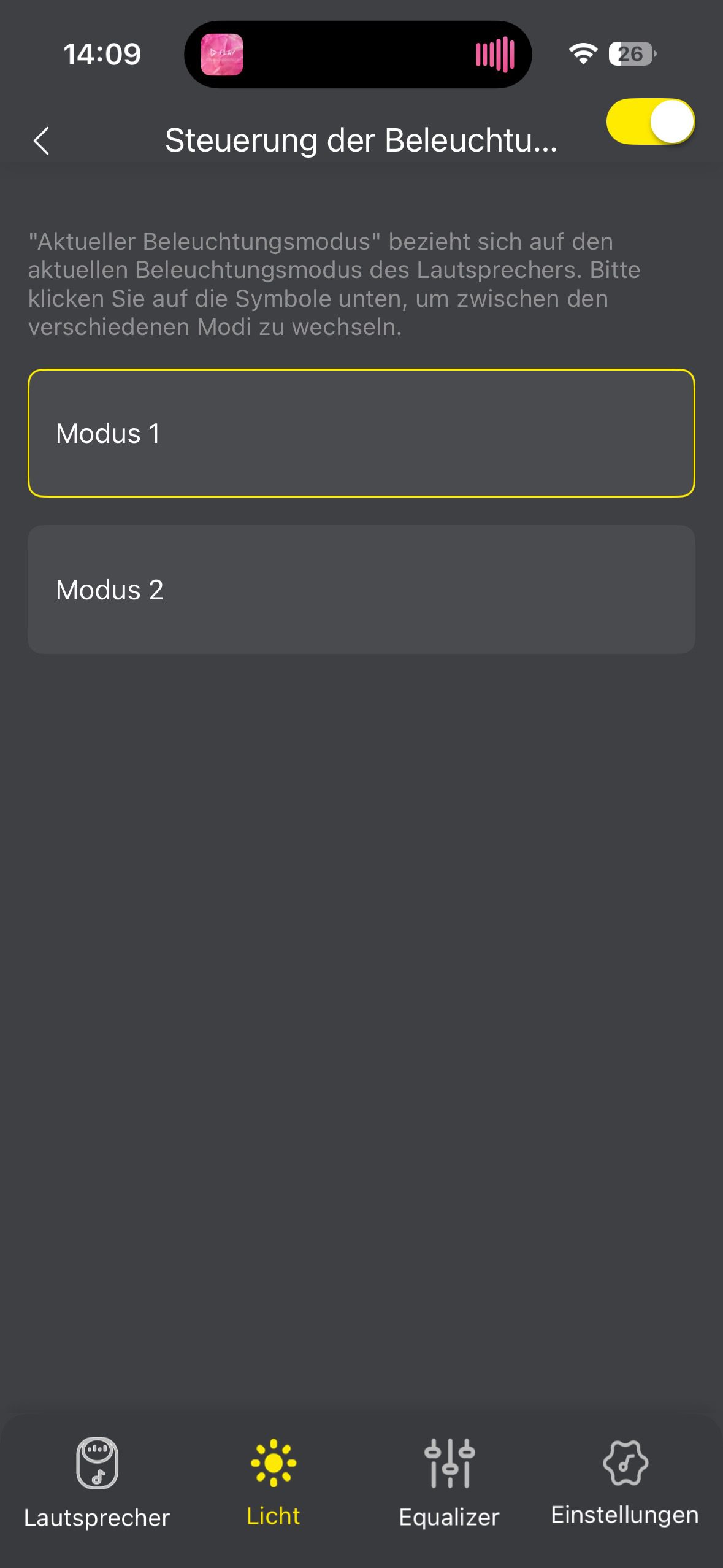Im Zusammenspiel mit der App (Android/iOS) kann der Klang der Tribit Stormbox Mini+ im Equalizer über fünf fertige Presets oder mit dem 9-Band-EQ ganz nach eigenem Gusto eingestellt werden. Die Lichtshow gibt zwei Modi zur Auswahl, wobei sich beide nicht sonderlich in ihrer eher kargen Ausdruckskraft unterscheiden, dabei aber mehr oder weniger dem Rhythmus der Musik folgen.