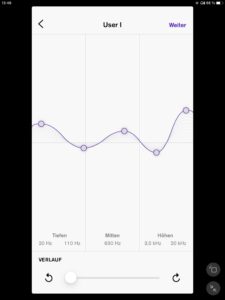 Bedauerlich ist, dass zum Verkaufsstart in Europa verpasst wurde die Ultimate Ears UE FITS zeitgemäß nachzurüsten. Anstelle des aktuellen Bluetooth-Standards und hochauflösenden Codec-Varianten wie aptX Adaptive oder LDAC, was im Premiumsegment dem Status quo entspricht, muss mit der Bluetooth-Version 5.0 sowie den Audiocodecs SBC, AAC und aptX vorliebgenommen werden. Auch Multipoint-Verbindungen mit zwei Geräten gleichzeitig unterstützen die In-Ears nicht. Möglich ist es hingegen die Hörer mit der App auf einem mobilen Gerät zu verbinden, während sie beispielsweise mit dem Laptop gekoppelt sind, so dass die Klangregelung genutzt werden kann. Was gut umgesetzt wurde.