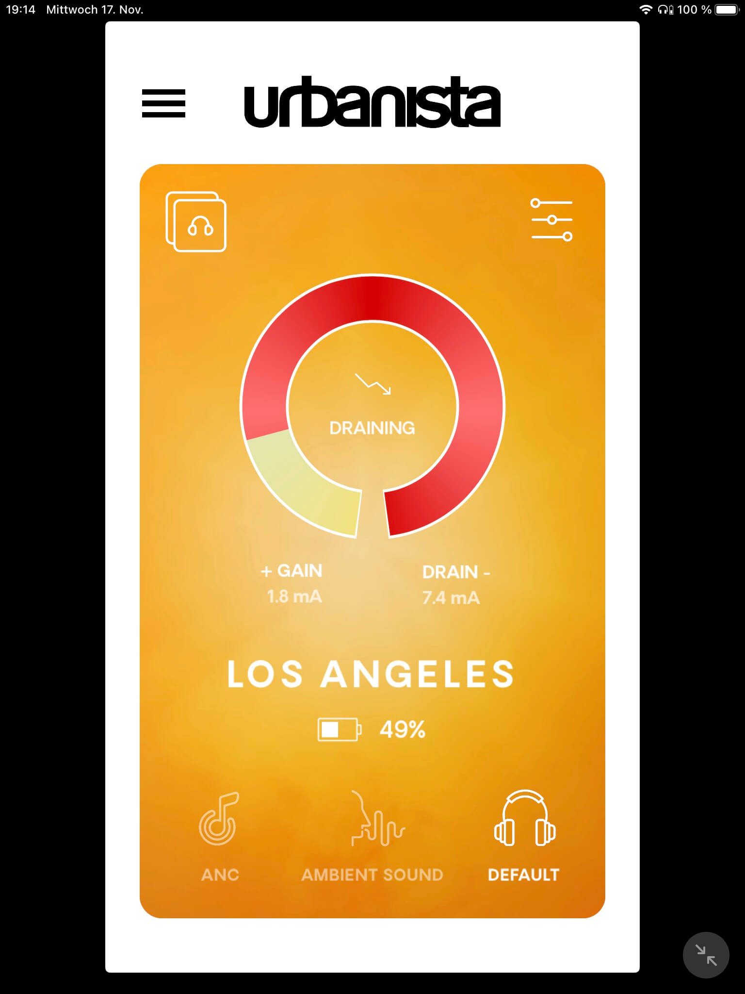 Neben dem Ein- und Ausschalten der On-Ear-Trageerkennung bietet die Urbanista Audio App (Android und iOS) eine Option, um die Belegung der Funktionstaste an die eigenen Bedürfnisse anzupassen. Eine Grafik veranschaulicht zudem das Verhältnis von Energiegewinnung und -verbrauch, wodurch gut nachvollziehbar ist wie effektiv die Selbstaufladung der Hörer erfolgt. Vorteilhaft ist darüber hinaus, dass die Los Angeles durch Firmware-Updates aktualisiert werden können. Einen EQ zur individuellen Klanganpassung bietet die App aktuell jedoch nicht, was eine wünschenswerte Ergänzung darstellt.