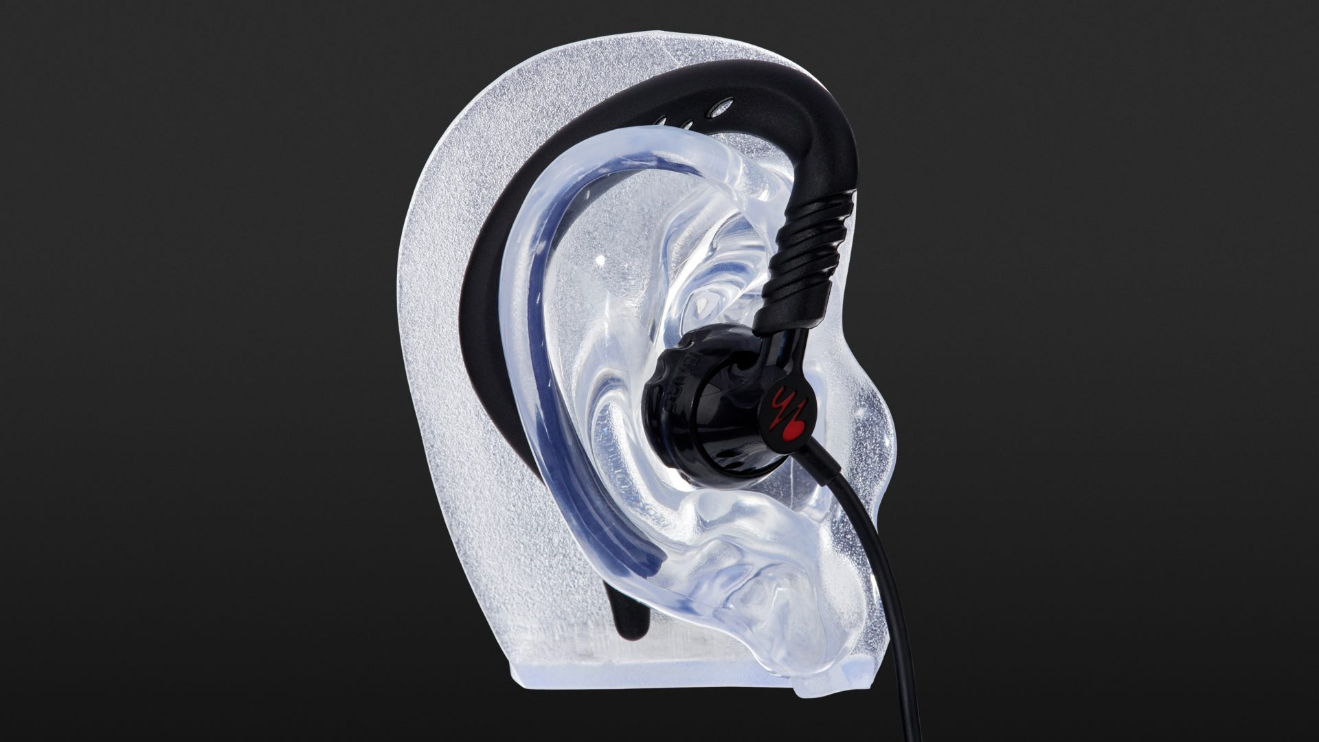 Der Yurbuds Focus 200 in der schwarzen Version besitzt zusätzliche flexible Ohrbügel für sicheren Halt. Er richtet sich damit eindeutig an sportliche Hörer.
