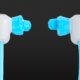 Auf den ersten Blick wirken die Kopfhörer recht groß, beim Einsetzen verschwindet aber der größte Teil im Ohr. Verbunden sind beide Hörer durch ein türkisfarbenes Stoffband. Dieses ist relativ fest und könnte etwas flexibler sein; super ist allerdings die Stoffummantelung, durch die das Tragen auch auf schweißnasser Haut angenehm ist.