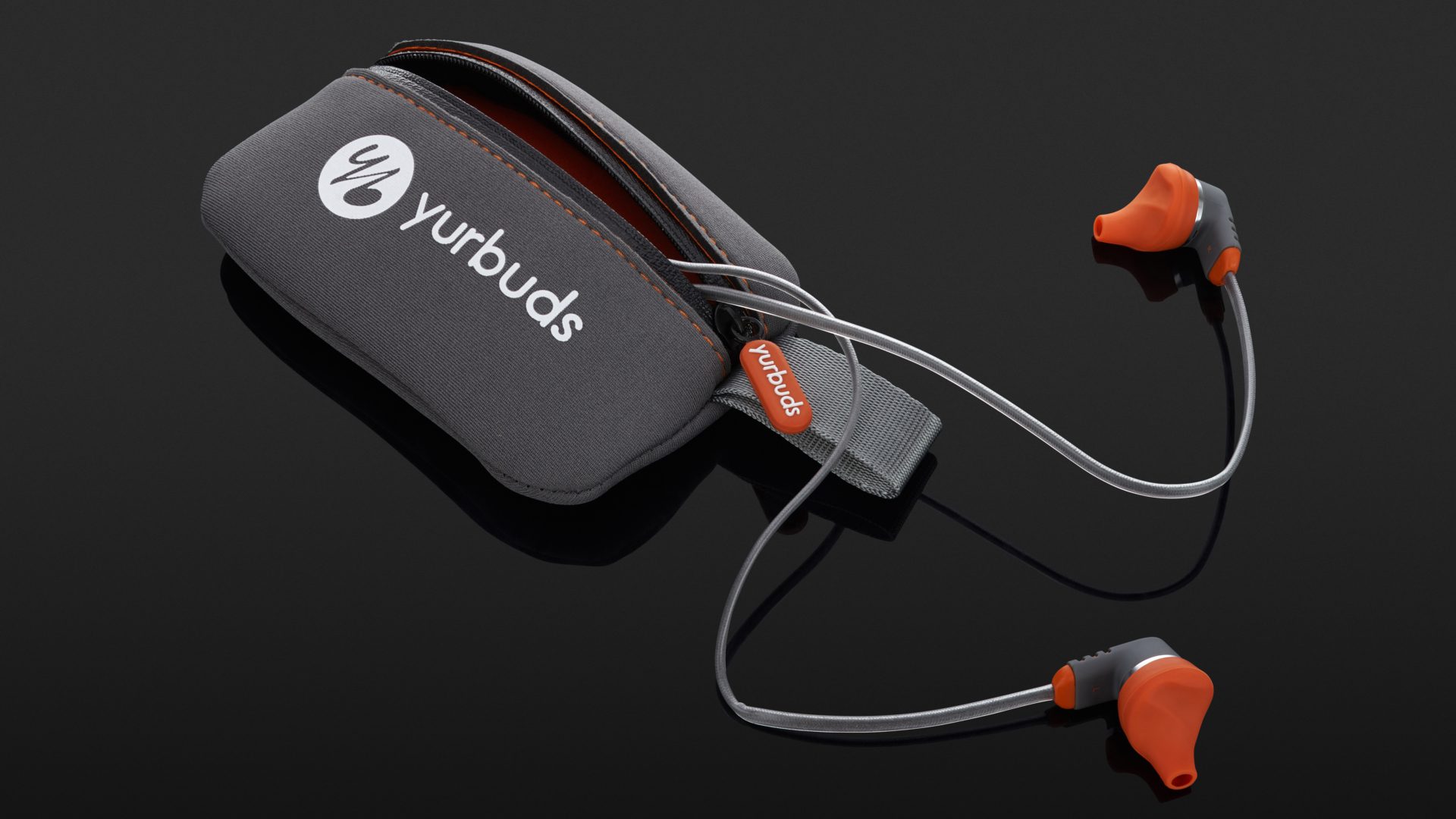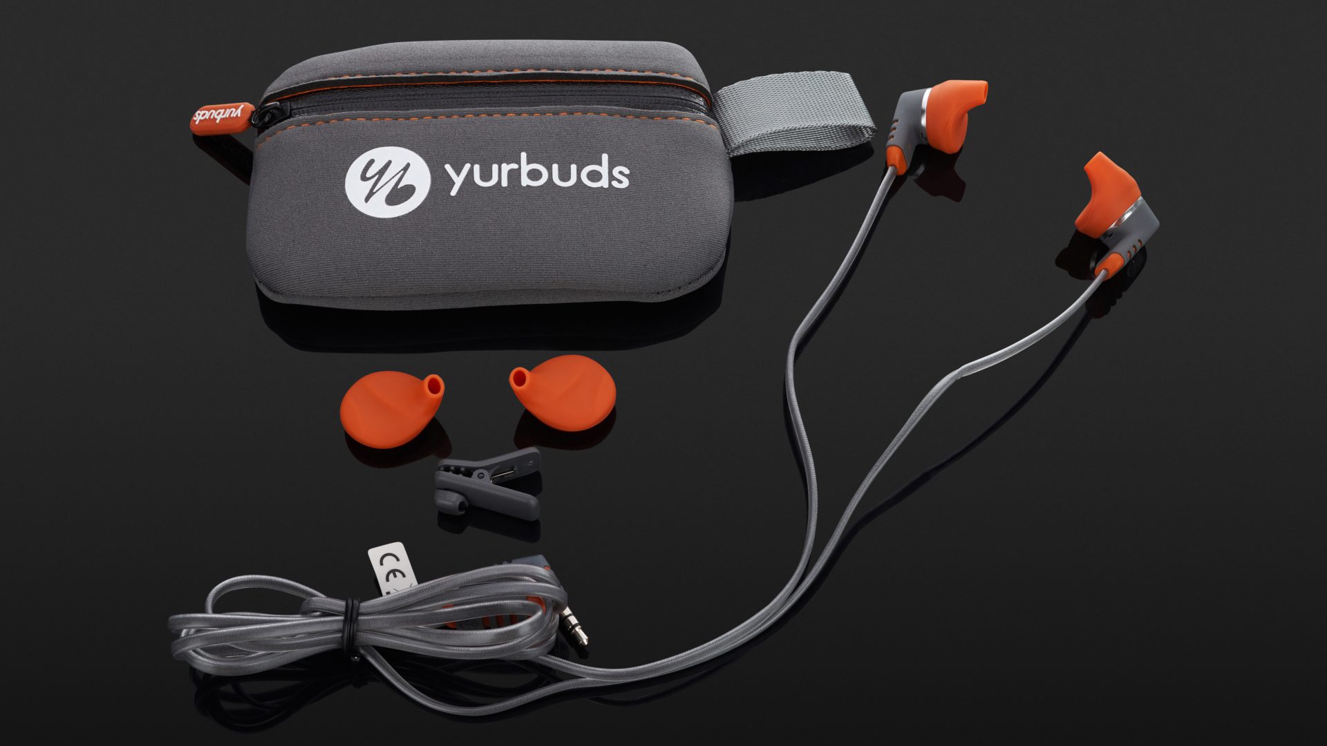 Der Yurbuds Duro kommt stylisch daher und richtet sich eindeutig an sportliche, jugendliche Hörer. Im Lieferumfang enthalten sind Ohrstöpsel-Aufsätze in zwei Größen, ein grau-orangenes Case für die Aufbewahrung und eine ausführliche Erklärung der Features und Anpassung der Ohreinsätze.